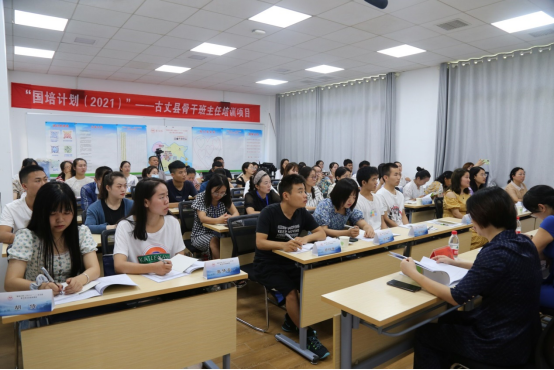 本项目是公司与古丈县开展教育培训综合改革模式创新试点项目建设的第三年,公司高度重视,精心安排。开班典礼上,继续教育公司经理曾小玲教授对参训班主任提出要求,珍惜学习机会,做好笔记,用心思考,争取多多学习专家、前辈们的丰富经验,更好地用于班级管理,更好地服务于员工。本项目首席专家徐卫良老师总结以往班主任培训项目的经验,基于广泛需求调研,充分整合资源,积极探索创新,不断凝练特色,以班级管理关键能力的提升”为培训主题,采取专家引领、案例剖析、任务驱动、参与研讨、交流分享、团队建设、拓展阅读等多样化的培训形式,着力培养骨干班主任班级管理、文化建设、活动设计、员工指导、心理教育等关键技能,以期提高古丈县骨干班主任的整体素养。