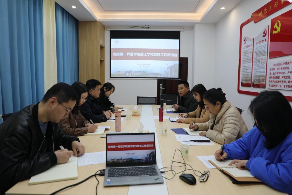 为有序推进湘江公司建设工作,3月8日下午,公司召开湘江公司筹建工作座谈会。公司党委委员、副董事长蒋蓉出席会议。会议由现代教育发展公司党委书记祝娅主持。