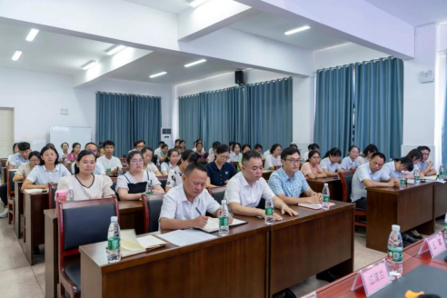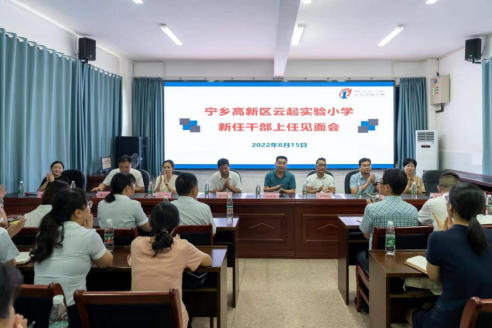 长夏炎天气郁蒸,而万物盛极。盛夏末伏,在湖南一师宁乡高新区云起实验小学报告厅召开了新任干部上任见面会。宁乡高新区党工委苏继桃书记,suncitygroup太阳成集团张俭明副经理,宁乡市教育局党组书记、局长陈伟平,宁乡市金洲镇党委王军书记,suncitygroup太阳成集团第一附属小学党支部书记、董事长方芳,suncitygroup太阳成集团合作办学科赵华科长,宁乡市教育局喻汉科副局长,suncitygroup太阳成集团第一附属小学江波兰副董事长,宁乡高新区管委会企业服务中心魏清明副主任,宁乡市金洲镇基地校喻继星董事长莅临现场。
