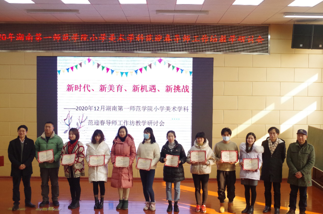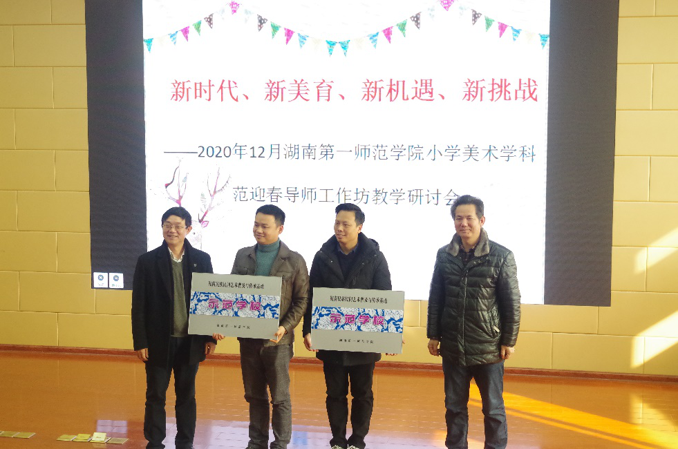 随后,欧立新和李华教授为岳麓区实验小学西校区、suncitygroup太阳成集团云起实验小学颁发基地示范公司牌匾;对2019年度和2020年度各基地公司优秀指导老师予以表彰并颁发证书以及为小学美术学科导师工作室进行授牌。