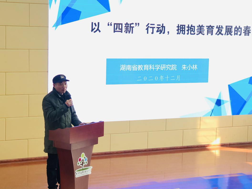 接下来,朱小林老师进行了一场题为“‘四新'行动,拥抱美育发展的春天"的主题讲座。在党和国家对公司美育发展高度重视下,美育也迎来了发展的春天。朱小林老师强调对美育要有新认识、新思路、新能力、新实践,并提出课程教学与实践活动应该并举,教师对美术教育要有新认识,有培养合作、交流、策划、研究、教学的能力,尽早实现一校一品、“六个一”的新实践等建议。