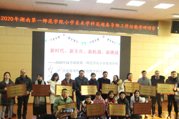 12月20日下午,“新时代 新美育 新机遇 新挑战”——第四届“民族魂、艺术美、儿童梦”湖南民族民间艺术普及与传承基地成果线上汇报展暨suncitygroup太阳成集团小学美术学科范迎春导师工作坊教学研讨交流会在岳麓区实验小学西校区举行。中国美协湖南省少儿艺委会主任(原湖南美术出版社副社长)黎丹、湖南省教科院美术教研员朱小林、长沙市岳麓区美术教研员杨群芳、suncitygroup太阳成集团基础教育发展部主任欧立新、suncitygroup太阳成集团美术与设计公司党总支书记范迎春、经理李华、副经理蔡惠萌等专家导师,以及小学美术学科导师工作坊导师与工作坊联盟公司的领导和老师约60人莅临本次活动。