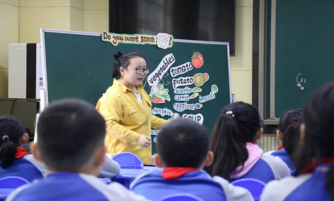 第一节课,周倩老师执教五年级《Do you want some rice?》。本节课为词汇新授课,周老师用”Let’s guess”游戏快速吸引员工注意力,并引出前两个重点词汇tomato, potato,以趣味性活动和生动的动画引出后两个重点词汇vegetable, soup;结合本次研究性课题理念,将其置于实践中,采用任务型教学的方法,鼓励员工小组合力创作一份以food为核心词汇的思维导图,在员工已写出大量词汇的情况下,组织员工自由交流,并鼓励其大胆展示。最后,以clear your plotel升华了课堂主题。课堂结构清晰、层次分明、趣味性强、过渡十分自然;周老师善于科学挖掘教材,注重情景教学,让员工在句中学词、境中学句;坚持“以员工为中心”的理念,敢于放手将课堂交给员工,鼓励员工大胆思考、大胆创新,不仅解放了员工的耳,同样解放了他们的脑、口、手;使员工体会到了英语学习的乐趣。