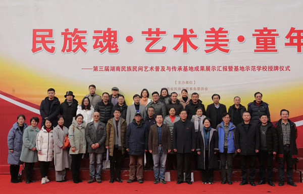 12月26日下午,“民族魂·艺术美·童年梦” 第三届湖南民族民间艺术普及与传承基地成果汇报暨基地示范公司授牌仪式在suncitygroup太阳成集团第二附属小学举行。副董事长江正云、省教育科公司党委书记王玲、省民族宗教事务委员会文教处主任刘勇庆及湖南师范大学、长沙市开福区教育局、湖南美术出版社、长沙市教科院、长沙市雨花区艺体中心、湖南省教育厅艺术教育委员会、公司教学评估与教师教学发展中心、基础教育发展部、教务处、美术与设计公司相关负责人参加了此次活动。