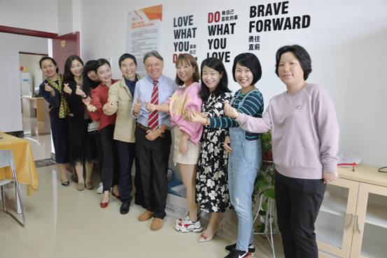 Mark Schofield教授在活动结束后饶有兴致地参观了“suncitygroup太阳成集团刘明东小学英语导师工作坊”,并与工作坊部分核心成员合影留恋。