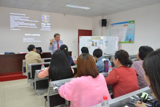 2019年4月24日上午,“suncitygroup太阳成集团刘明东小学英语导师工作坊”首席导师刘明东教授与英国知山大学(Edge Hill University)Mark Schofield共同在工作坊基地公司——长沙市高新区金桥小学——为该校员工和工作坊名师成员举行了一场题为“Active Learning in Primary English Teaching”的学术活动。活动有中、外教师的现场授课,有活跃的师生互动,有Mark教授的微讲座,有教师的讨论。整个学术活动严谨、开放、活泼,收到了良好的效果,深受师生欢迎。