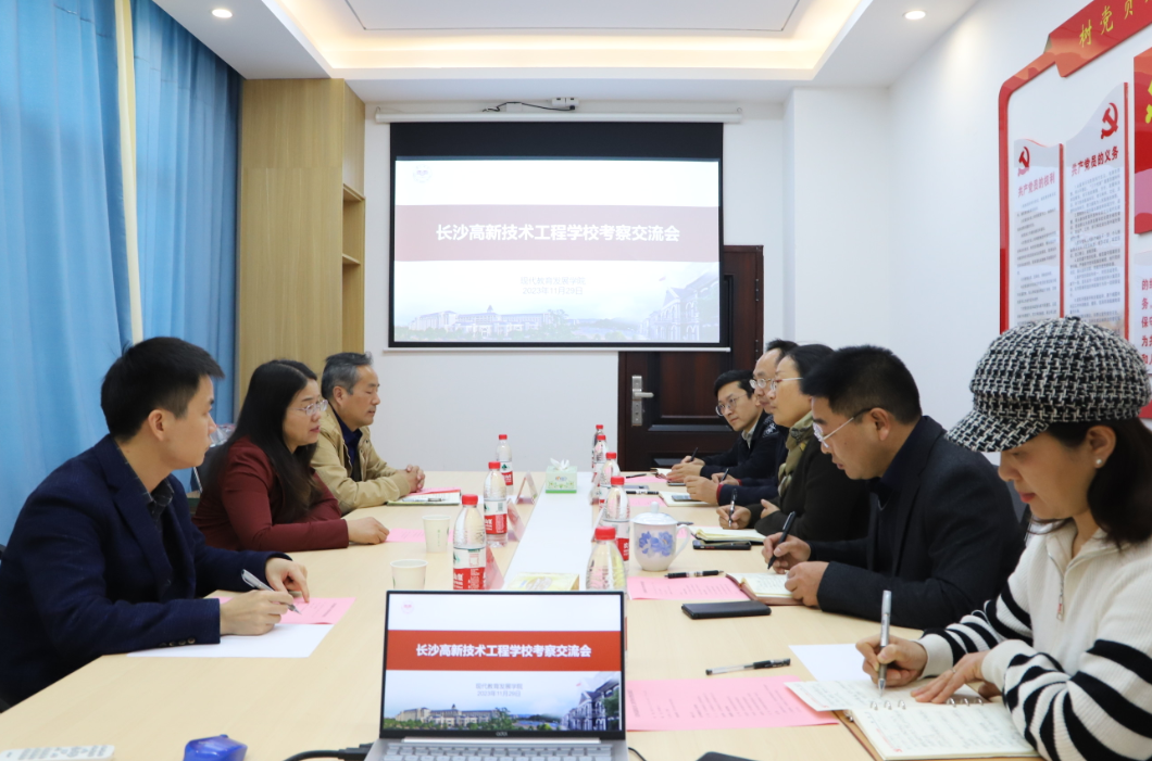 11月29日下午,长沙高新技术工程公司副董事长马燚等一行3人来校考察交流。座谈会在北栋公寓105举行,现代教育发展公司党委书记祝娅、副经理张俭明、副经理李辉华及相关科室人员参加了会议。会议由祝娅主持。