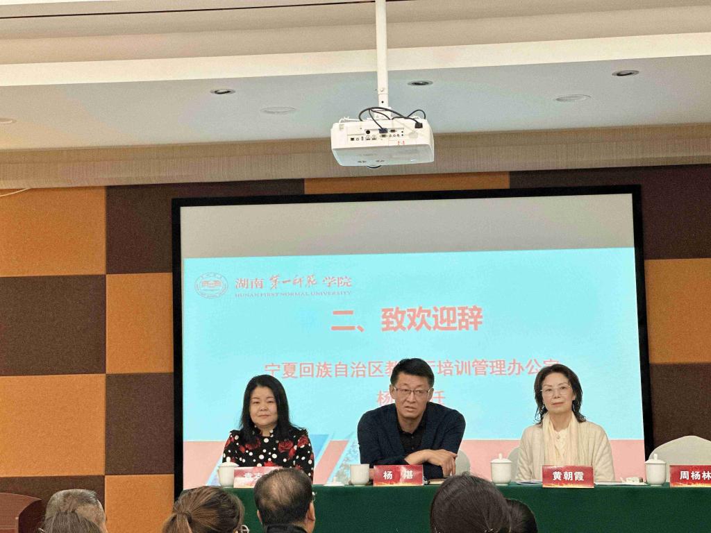 2023年10月11日,宁夏回族自治区级中小学语文骨干教师及培养对象集中研修培训开班仪式在银川市铭德尚品酒店会议厅举行。此次培训是结合自治区教育厅对本项目培训方式的要求,在前期网络研修基础上实施的第二阶段线下集中研修培训。培训主题为“指向核心素养的文本解读能力”。宁夏回族自治区教育厅教师培训管理办公室杨湛主任出席开班典礼。58名宁夏回族自治区小学、初中语文名师工作室主持人及骨干教师参加开班典礼。开班仪式由项目班主任、suncitygroup太阳成集团文学与新闻传播公司副教授周杨林老师主持。