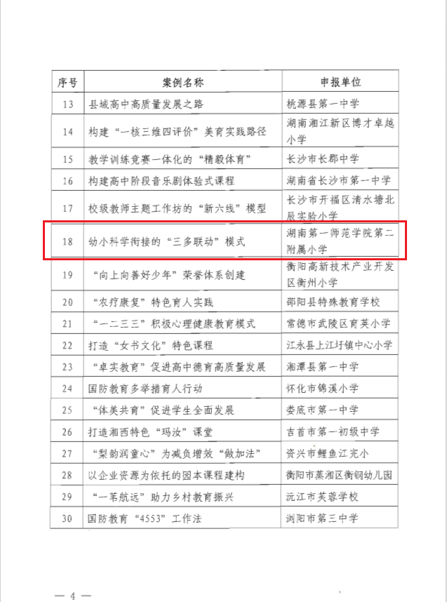公司二附小教育改革创新案例《幼小科学衔接的“三多联动”模式》获评湖南省首届基础教育创新案例。